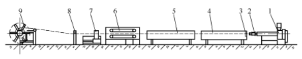 Som framgår av figur 1 består rörextruderingsutrustningen nedströms huvudsakligen av kylvattentanken,avlämningsenhet, fräs, coiler, eller dumpningsbord.