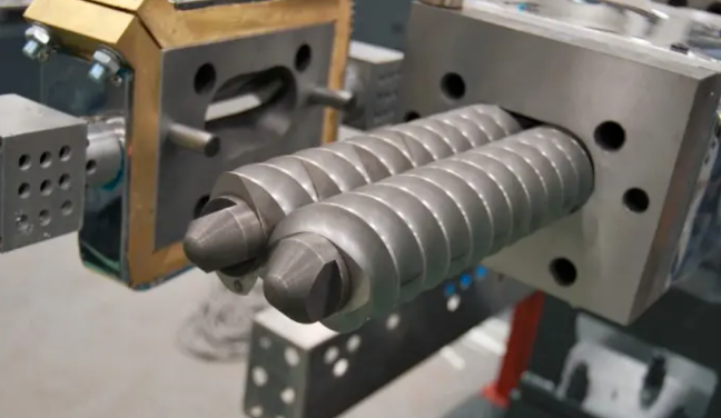 Utformning av formhuvudets temperatur: När smältan kommer in i formhuvudet och är på väg att extruderas för pelletisering (oavsett om det sker genom strängpelletering, vattenring eller undervattenspelletering), måste temperaturen i allmänhet sänkas på lämpligt sätt. Testning kan bestämma extrudattemperaturen och notera dess skillnad från smälttemperaturen inuti trumman. Dessutom, om den är utrustad med en skärmväxlare direkt, är varaktigheten och framgången för skärmbytesprocessen ofta relaterad till viskositet och smältflödeshastighet, vilket kan hanteras genom att justera munstyckshuvudets temperatur.
