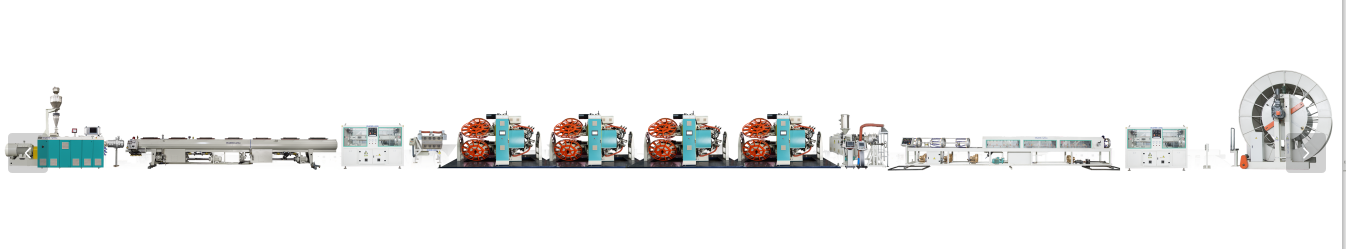 Förstärkt termoplaströr (RTP) Extrusion Line, som används speciellt för tillverkning av armerad termoplastisk icke-metallisk trådförstärkt flexibel kompositrör, som introducerade den senaste tekniken i USA. Den avancerade G-typen antar EU-standarder, och den avancerade U-typen i Nordamerika antar nordamerikanska standarder. Hela serien är konfigurerad enligt varumärket GRAEWE FANGLI.